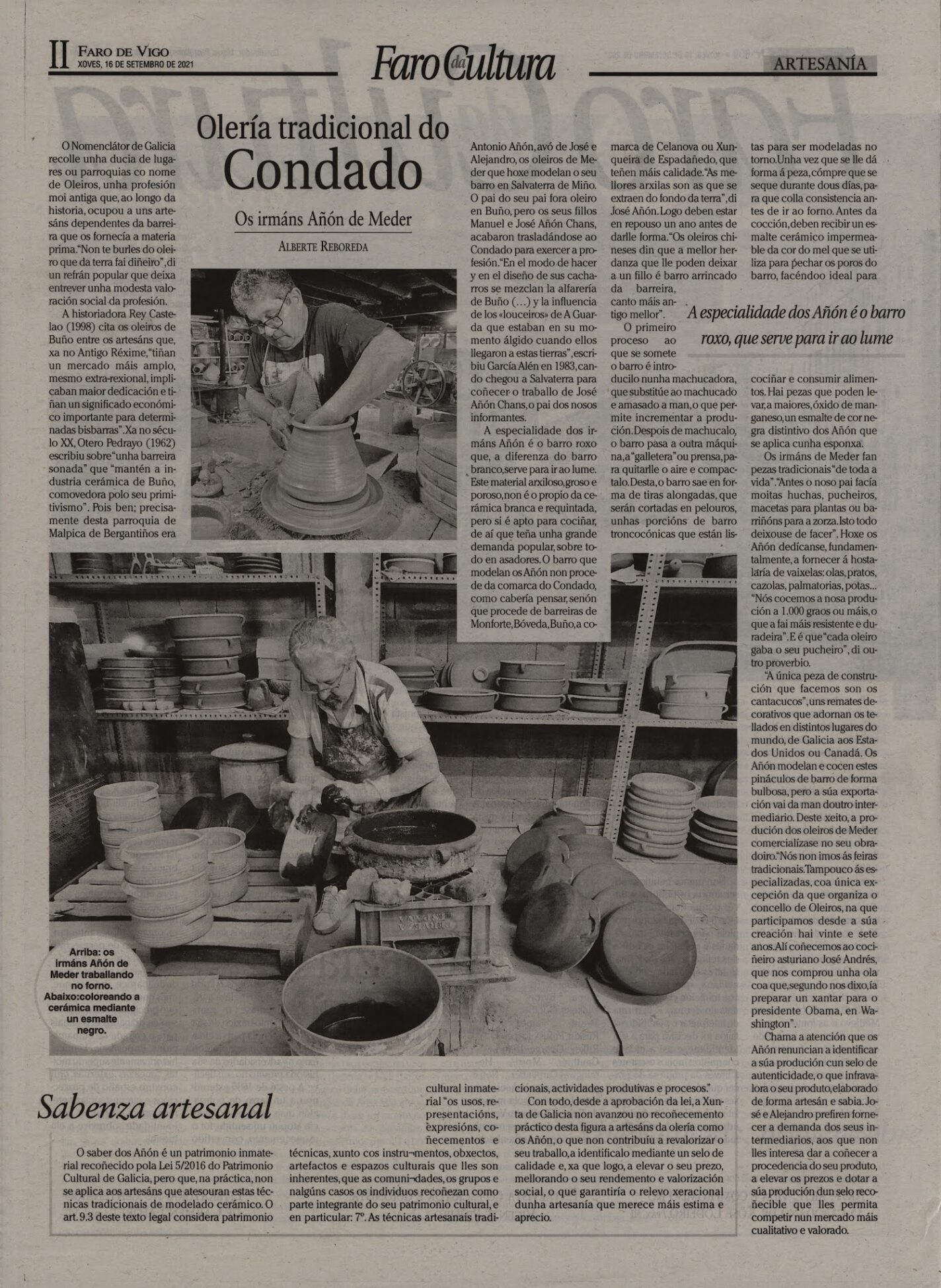 Hoxe públicase no Faro de Vigo na sección Faro da Cultura un interesante artigo sobre Manuel e José Añón Chans, os oleiros de Meder, fillos e netos de oleiros, …