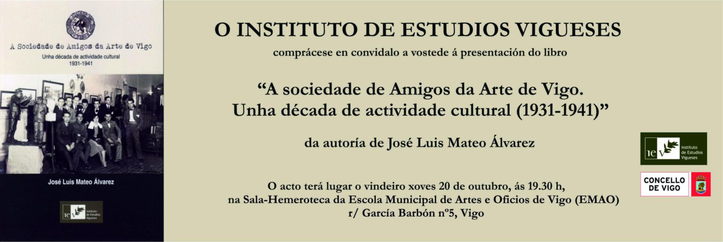 Presentación do libro “A Sociedade de Amigos da Arte de Vigo. Unha década de actividade cultural (1931-1941)” de José Luis Mateo Álvarez [OUTRAS NOVAS]