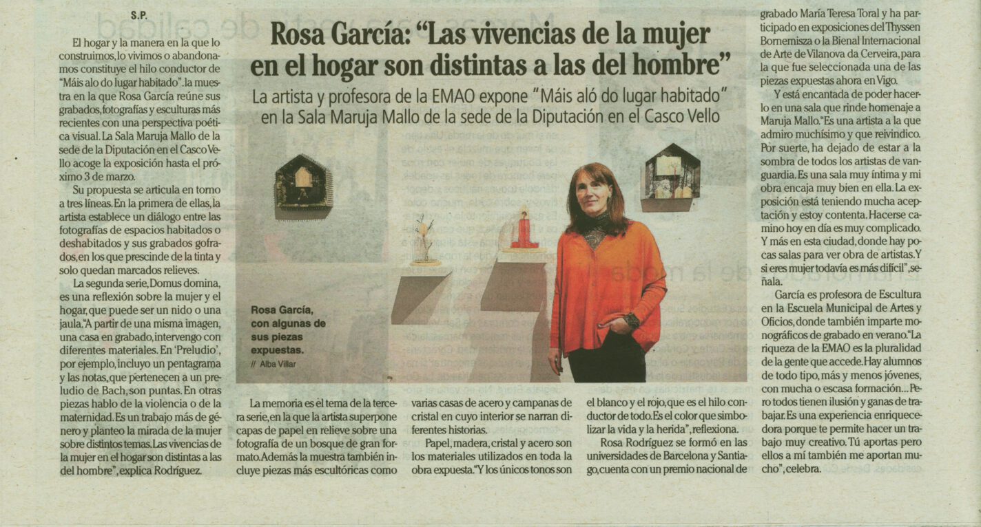 FdV. 10-2-2023 Subimos o noso blogue este artigo publicado hoxe no Faro de Vigo sobre a exposición “Máis alo do lugar habitado”, que se expón estes dÃas na Sala Maruja …