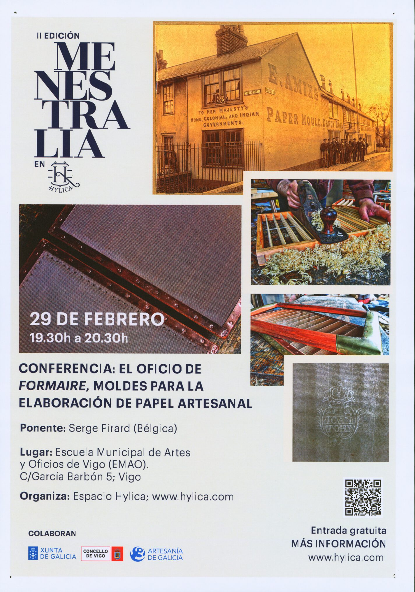 Xoves 29-2-2024 de 19.30 a 20.30 Nesta conferencia Serge Pirard, un dos poucos artesáns que continúa co oficio case en extinción, de fabricante de moldes para a elaboración de papel …