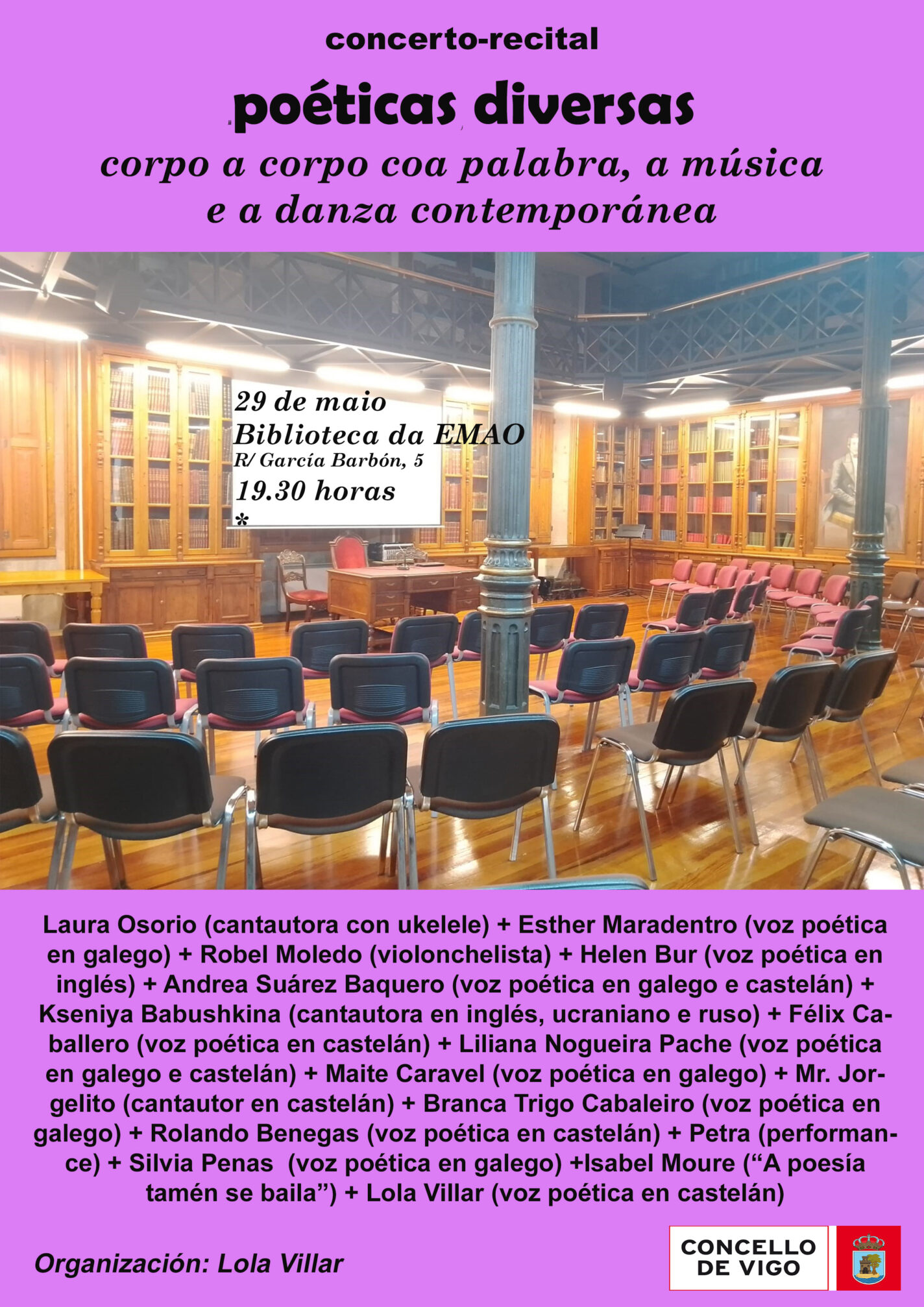 29-5-2024. Concerto-Recital Poéticas diversas. Corpo a corpo coa palabra, a música e a danza contemporánea [OUTRAS NOVAS]