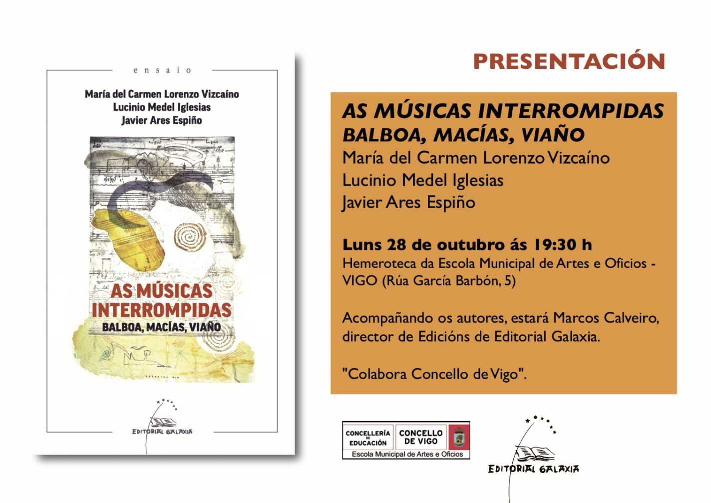 28-10-2024. Presentación do libro “As músicas interrompidas. Balboa, MacÃas, Viaño” [OUTRAS NOVAS]