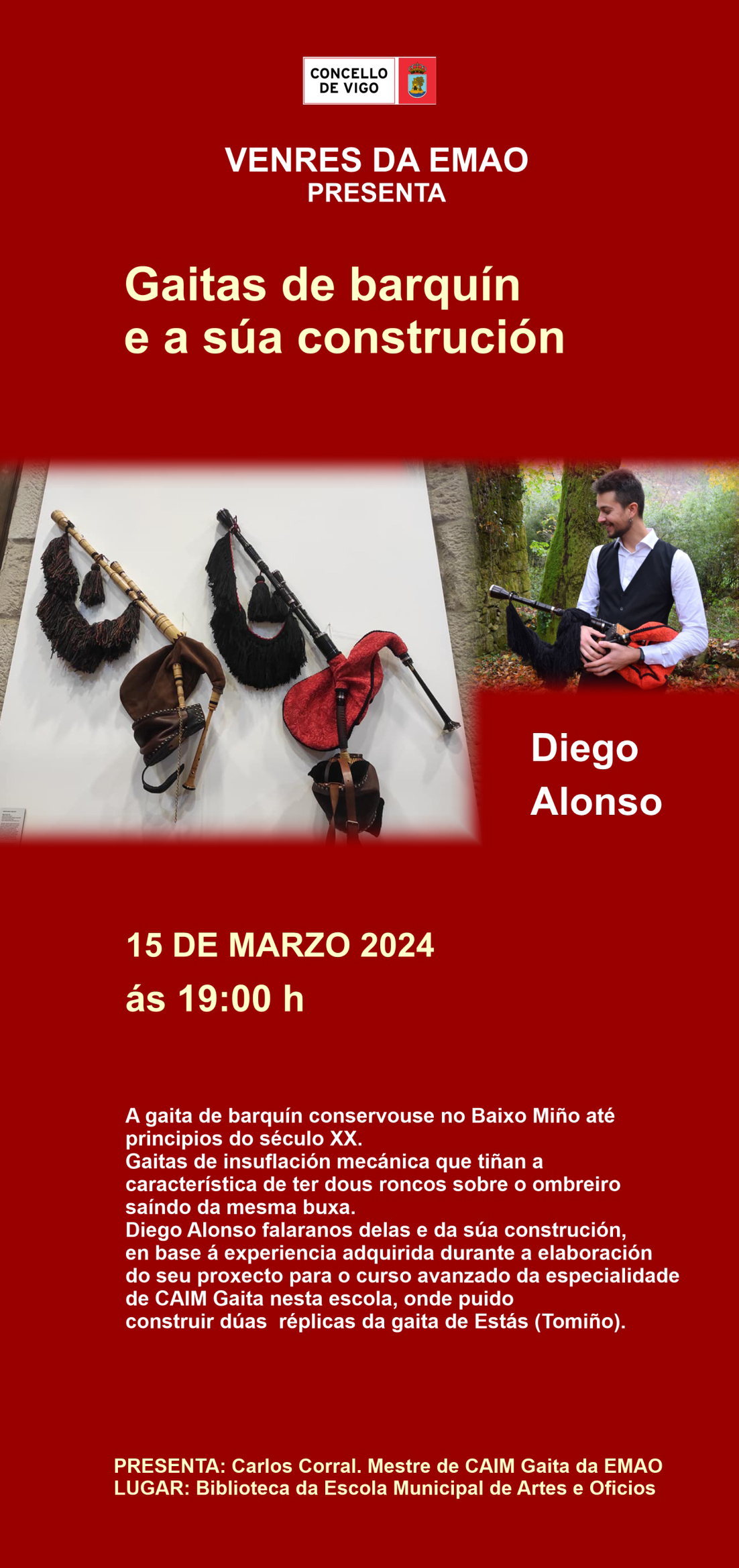 15-3-2024. Venres da EMAO presenta “Gaitas de barquín e a súa construción” por Diego Alonso [CAIM GAITA]