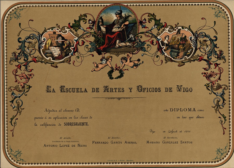 Diploma do ano 1900 Este mércores, 29 de xuño ás 19:30, no Salón de Actos da EMAO farase a entrega de diplomas por parte do Excmo. Alcalde de Vigo, …