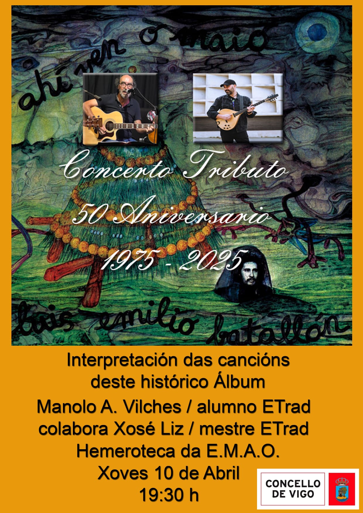10-4-2025. “Ahí ven o maio” Concerto tributo “50 Aniversario” a Luis Emilio Batallán por Manolo A. Vilches e Xosé Liz [OUTRAS NOVAS]