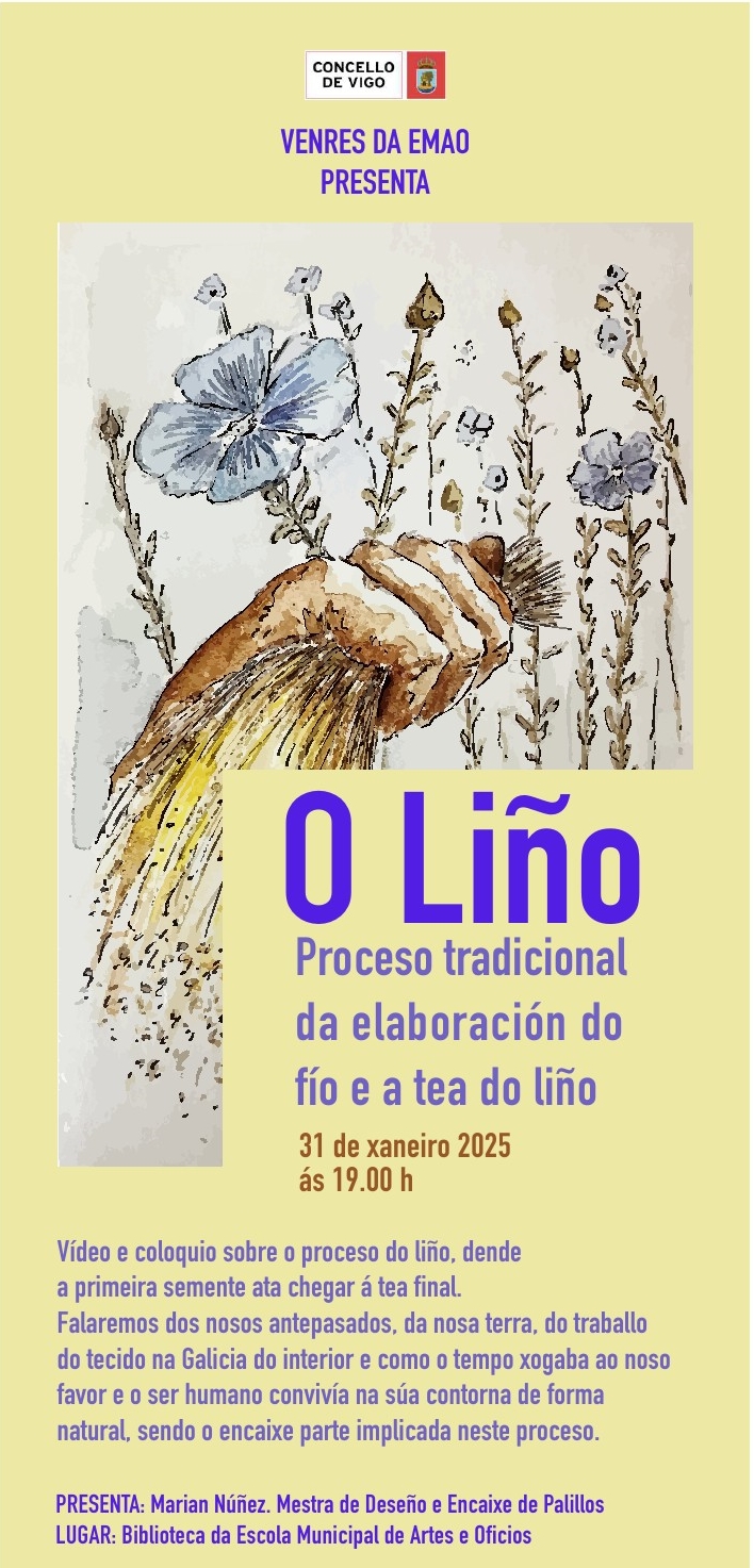 31-1-2025. Venres da EMAO presenta “O liño. Proceso tradicional da elaboración do fío e a tea do liño” [DESEÑO E ENCAIXE DE PALILLOS]
