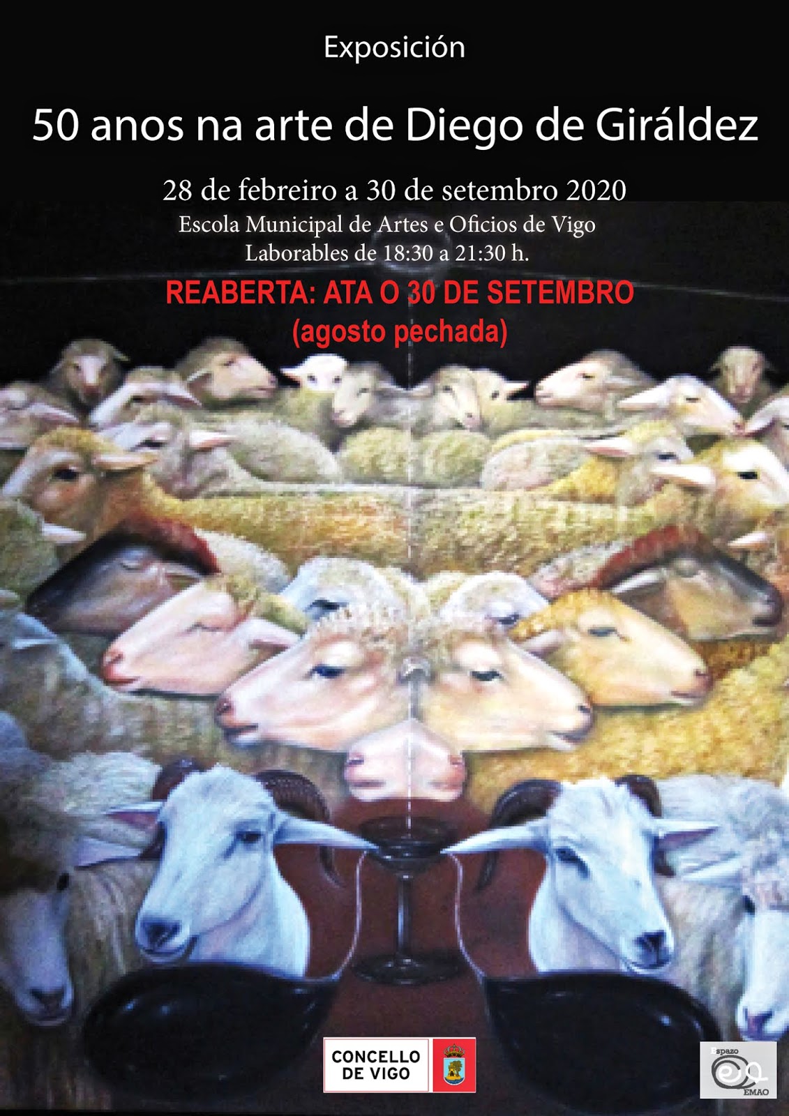 Reabrimos a Exposición “50 anos na arte de Diego de Giráldez”. Ata o 30 de setembro (agosto pechado) con horario ampliado de 18:30 a 21:30 h