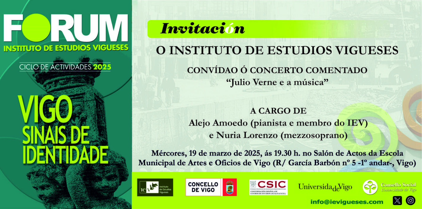 21-11-2024. Conferencia “Que é a área metropolitana de Vigo?” por Xosé Manuel Souto [FORUM IEV] 20-11-2024. Conferencia “RosalÃa de Castro nas gravacións da música galega” por Xaime Estévez …