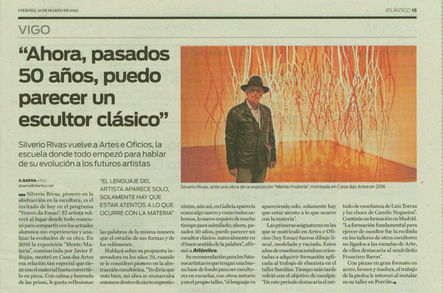 Silverio Rivas non necesita presentación, xa que forma parte da historia viva da Escola Municipal de Artes e Oficios de Vigo. Sendo moi novo, formouse entre estas paredes con …