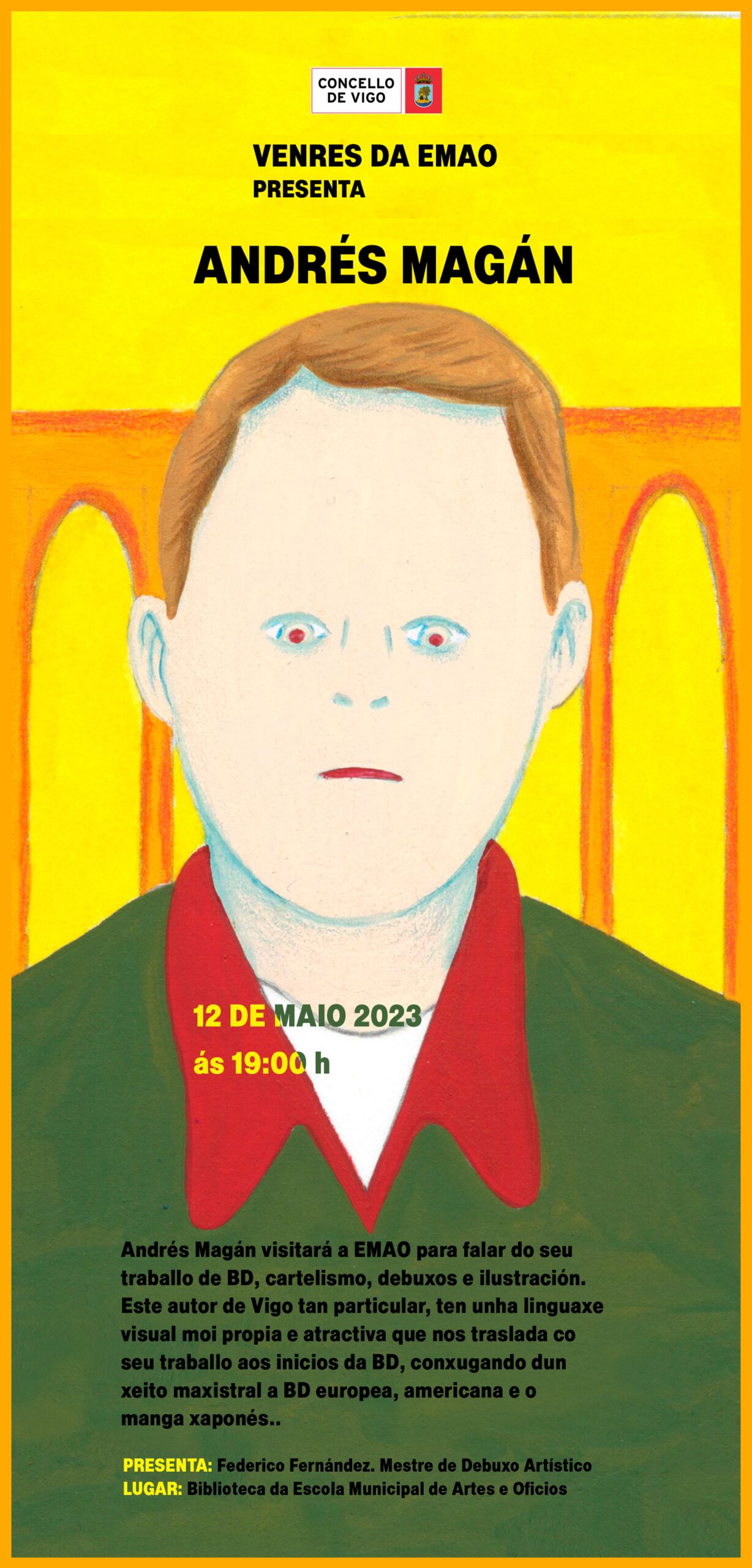 Andrés Magán acompañaranos neste Venres da EMAO para falar do seu traballo de Banda Deseñada, cartelismo, debuxos e ilustración. Este autor vigués, compaxina a ilustración coa música para centrarse