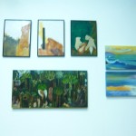 Ben distintas son as propostas en óleo de Elena Riveiro, quen a partir de distintas fotografías tomadas persoalmente e de bocetos en pequeno formato, nas súas pezas MARIÑAS, o estudo da luz e a ausencia de figuras humanas, perto da estética romántica, preséntanos distintas paisaxes mariñas onde a cor ten un valor fundamental. Luz Sánchez retrata tamén en óleo a contorna dunha vila, da que realizou tamén diversos bocetos ao natural e distintas acuarelas, mais o emprego da espátula como útil trazador, de aí o título da súa proposta, INVESTIGACIÓN SOBRE O TRABALLO CON ESPÁTULA, ue fai que as súas pinturas, aínda que exentas de figura humana, nos acheguen a un lugar cálido onde a luz xoga tamén un papel importante. O emprego da espátula está tamén presente na proposta de Eva Romero, quen en OS ROSTROS DE EVA, emprega o acrílico para amosarnos un xogo conceptual co expectador, na representación de arquetipos femininos, establecendo un diálogo entre as deusas gregas e as mulleres actuais, nesta peza na que o espazo en branco e o emprego da espátula delimitan o espazo simbólico.