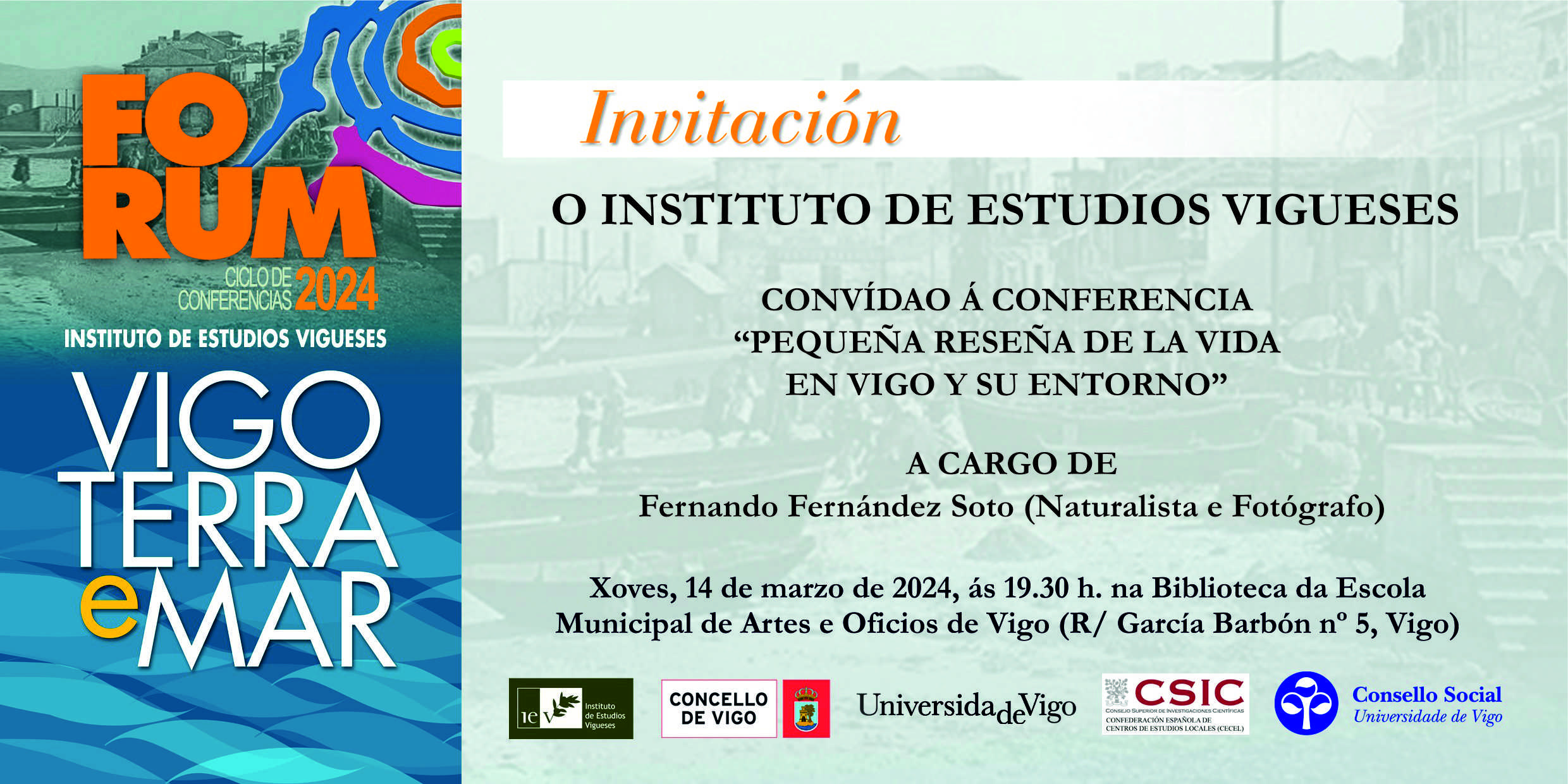 14-3-2024. Conferencia “Pequeña reseña de la vida en Vigo y su entorno” por Fernando Fernández Soto [FORUM IEV] [OUTRAS NOVAS]
