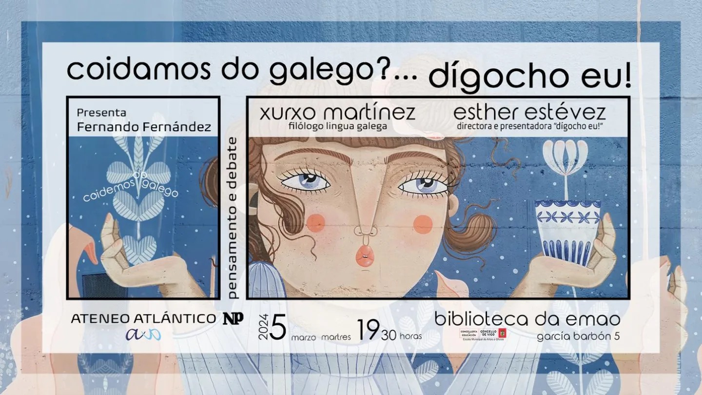 marzo, ás 19.30 horas, na biblioteca da EMAO, Esther Estévez (presentadora e directora do Dígocho Eu! TVG) e Xurxo Martínez (filoloxía galega), conversarán aredor da situación actual da
