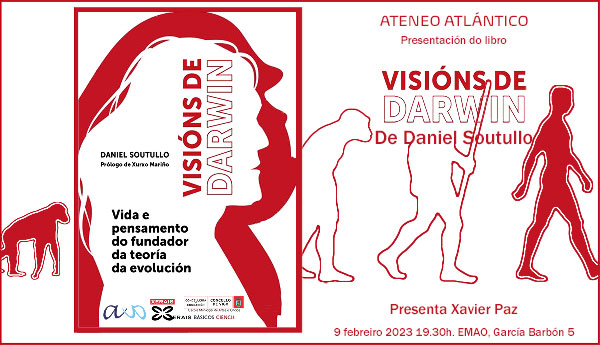 O Ateneo Atlántico presenta o libro de Daniel Soutullo Visións de Darwin: vida e pensamento do fundador da teoría da evolución. O autor estará acompañado polo asesor literario Xabier Paz.