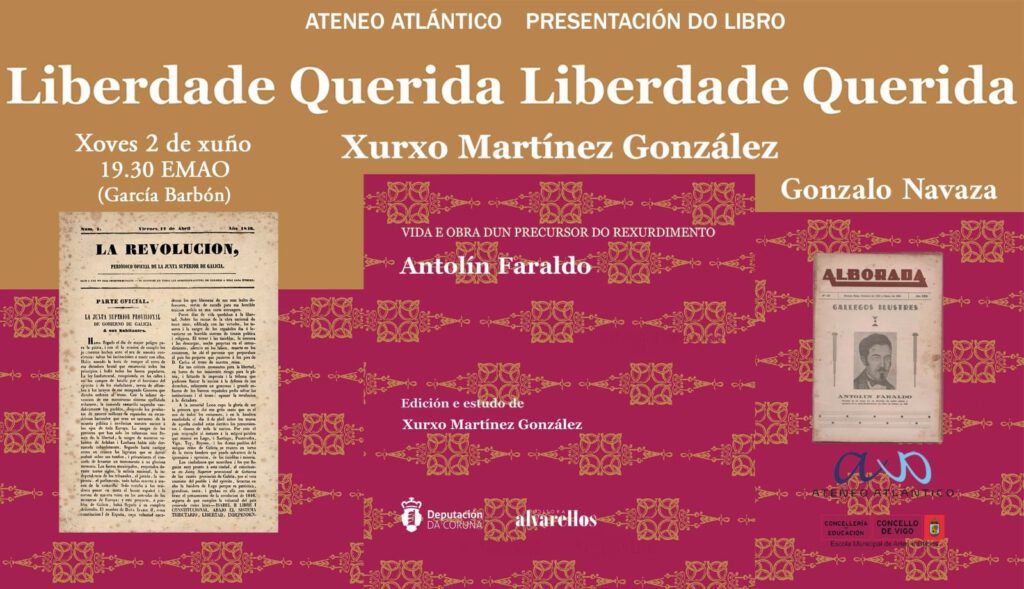 Presentación do libro “Querida Liberdade. Vida e Obra dun precursor do Rexurdimento Antolín Faraldo” por Xurxo Martínez González, acompañado de Gonzalo Navaza