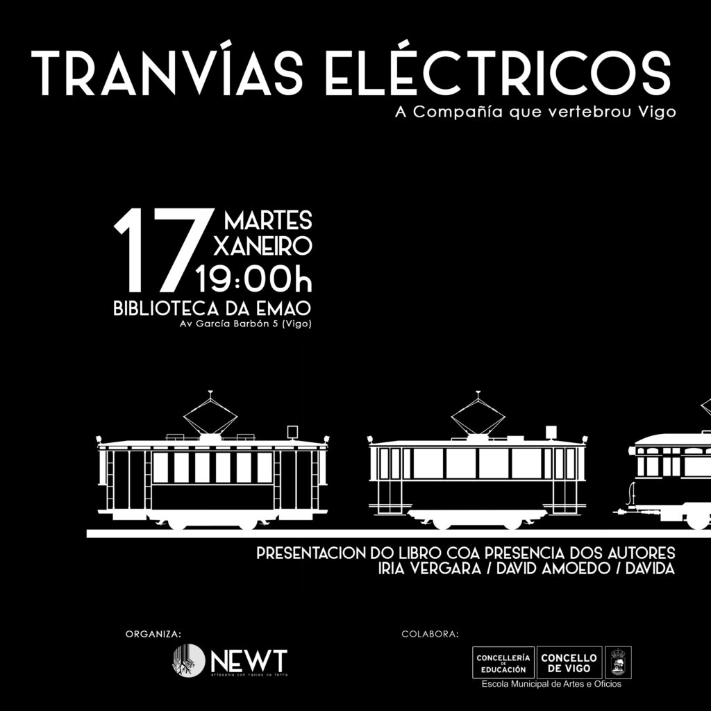 O vindeiro martes, 17 de xaneiro ás 19:00 h, temos na hemeroteca a presentación do libro “Tranvías eléctricos: a compañía que vertebrou Vigo” Escrito e ilustrado por Iria Vergara e David Amoedo (antigo alumno da Escola) e encadernado no taller artesán Hiel de Buey  (tamén antigo alumno da Escola).