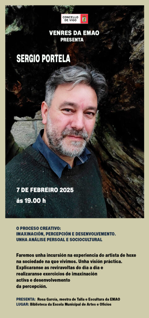 7-2-2025. Venres da EMAO presenta a Sergio Portela “O proceso creativo. Imaxinación, percepción e desenvolvemento. Unha análise persoal e sociocultural” [TALLA E ESCULTURA EN MADEIRA]